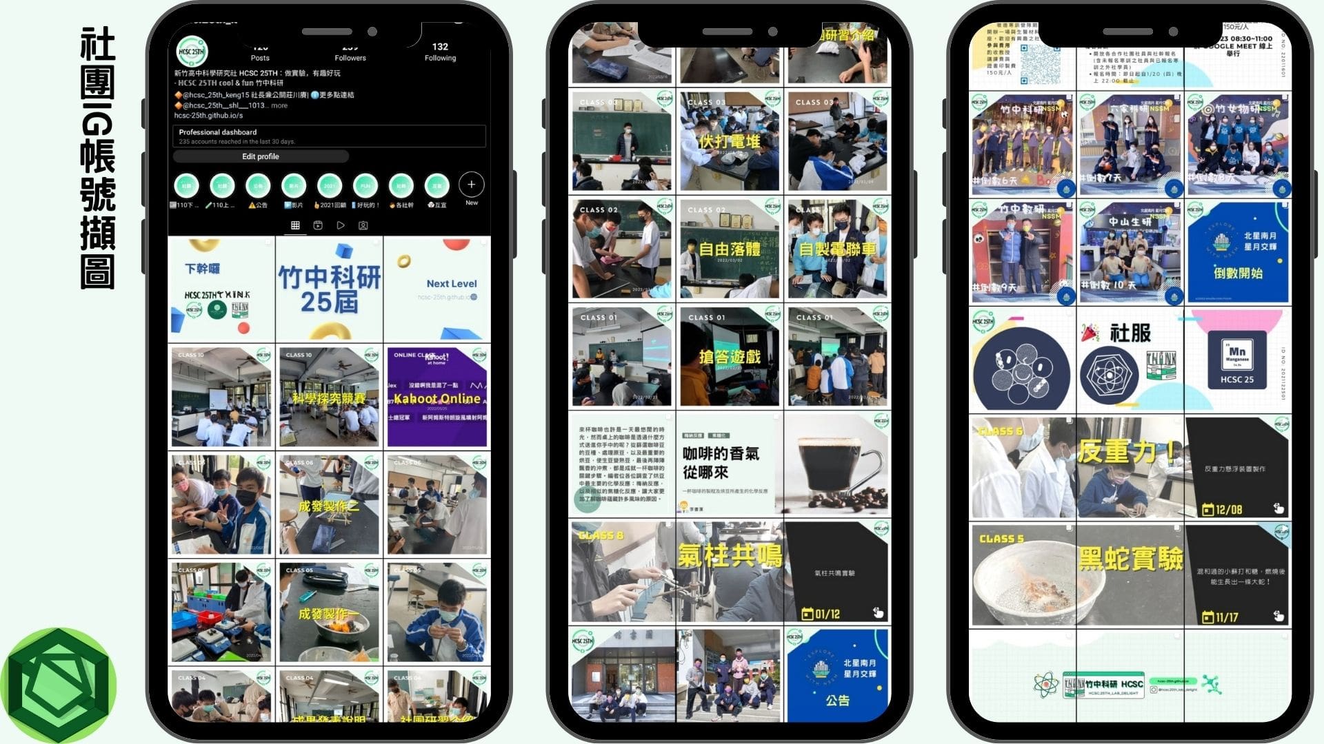 為了要讓發佈到網路上的圖片更有可看性,以及統一視覺效果,所以我學習了設計軟體 Canva ,並用它來設計社團的東西,像是社服、公告、社徽、影片等等。我覺得最難的設計是 LOGO 設計,因為要 LOGO 具辨識度、有意義但又不複雜是很困難的,而且要可以應用在各種媒介上,這部份還可以再更深入的學習。